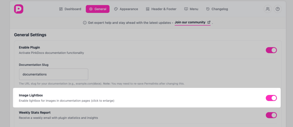 The Image Lightbox feature allows users to click on images inside documentation pages to view them in an enlarged, distraction-free overlay.