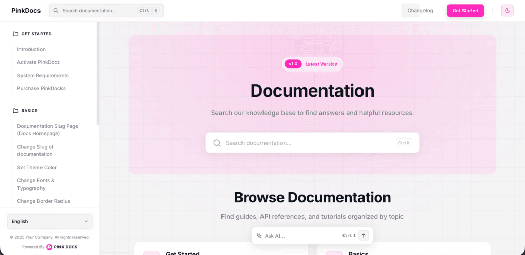 With PinkDocs, light and dark modes aren’t an add-on—they’re a first-class experience, designed to make your documentation feel polished, modern, and effortless to use.